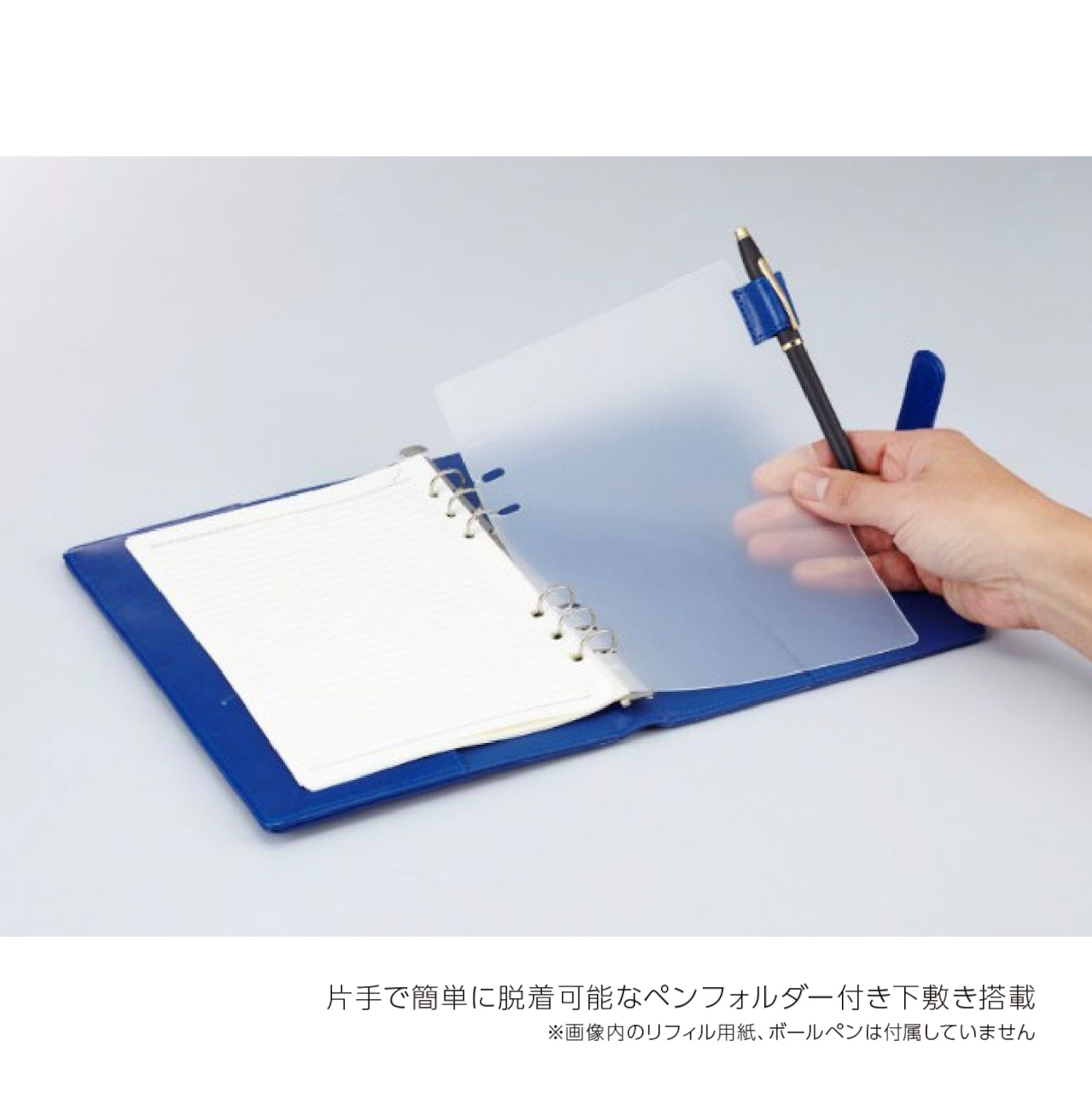 ・片手で脱着可能なペンフォルダー付き下敷きを装着