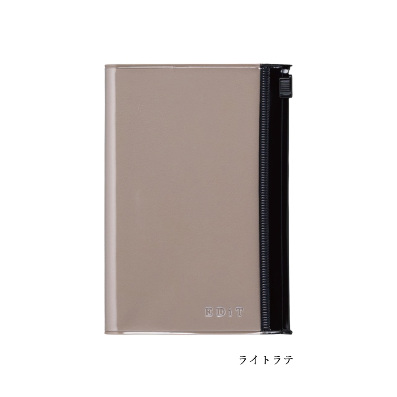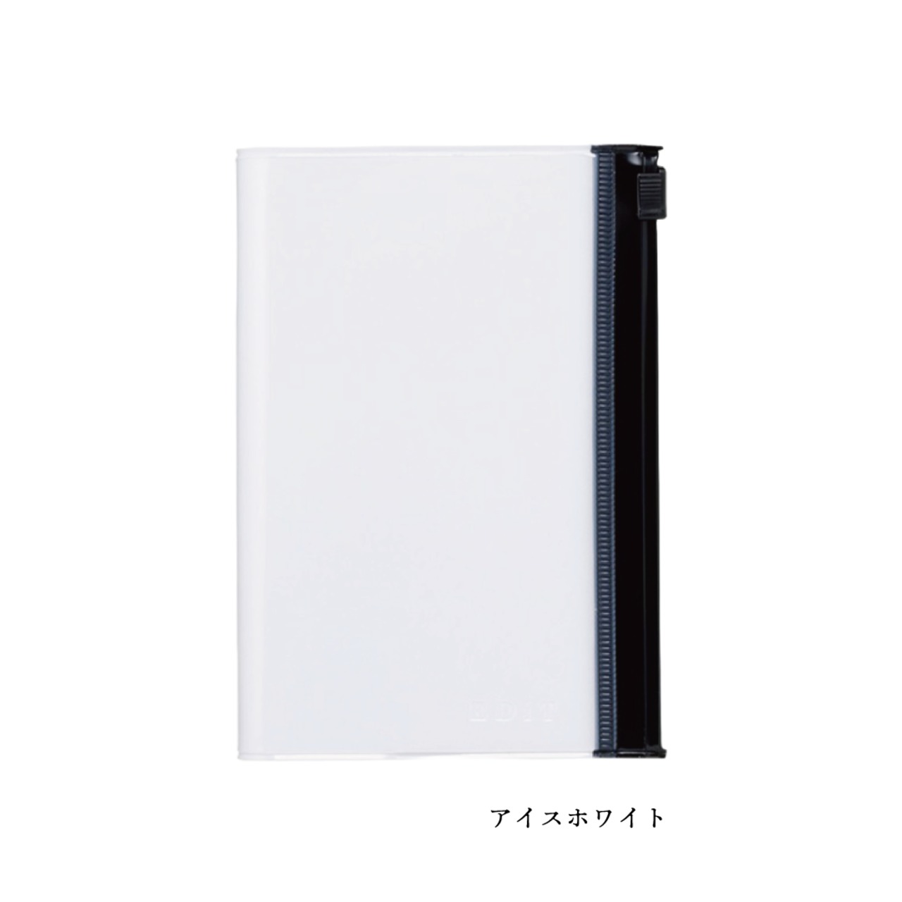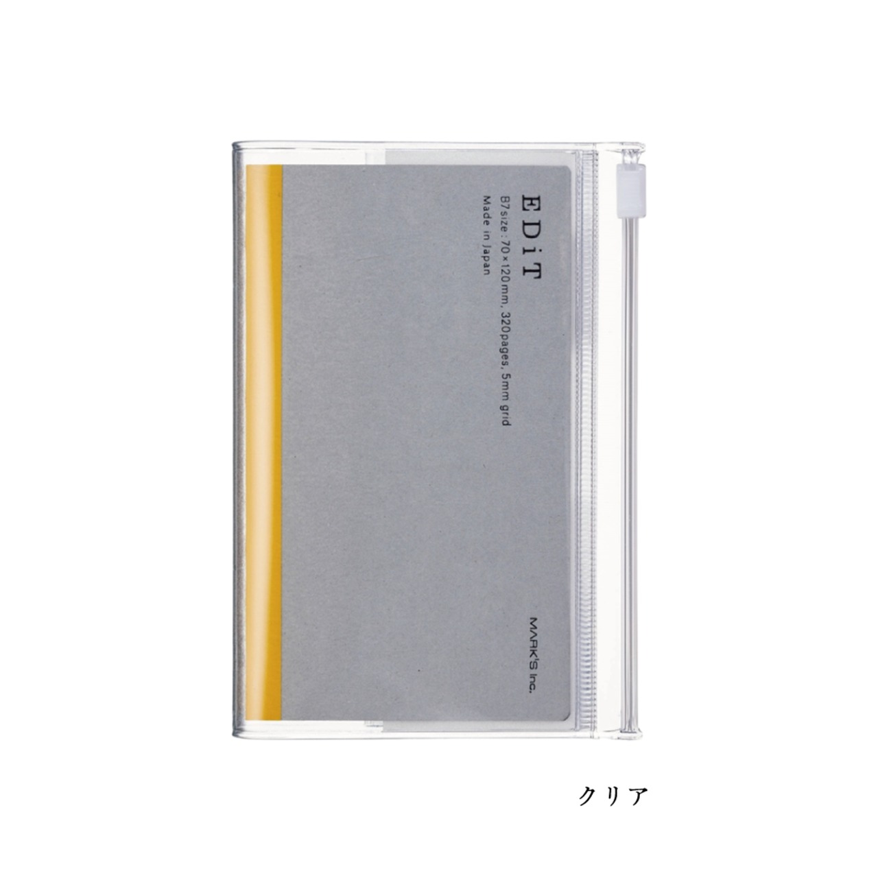 スライドジッパータイプのPVCカバーのポケットには、付せんやクリップ、コインや名刺などのちょっとした小物を入れて、ノートといっしょに持ち歩くことができます。