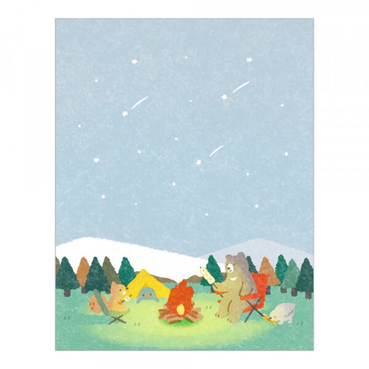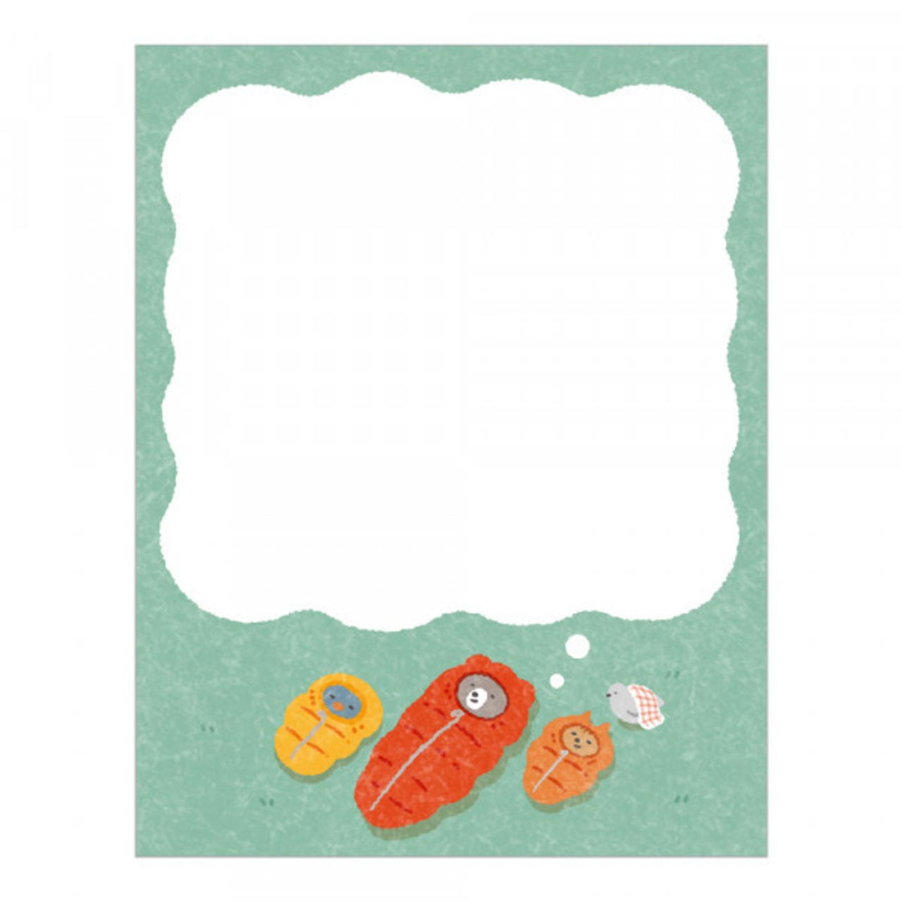 趣味のキャンプを楽しむ動物たちを描いたメモです。
