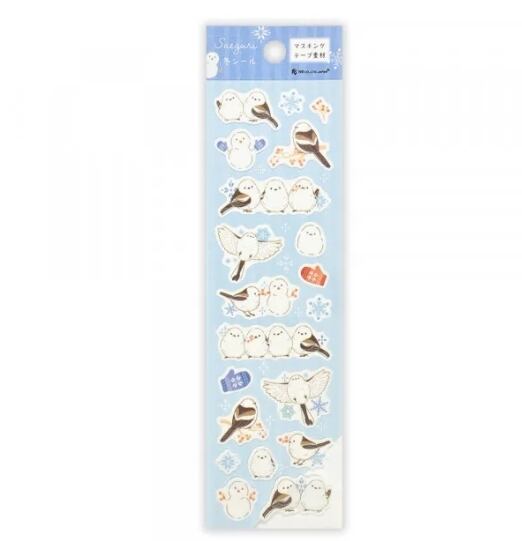 (シール 冬 雪 シマエナガ 鳥 癒し 文具 かわいい 手帳 デコ 雑貨 和紙 マスキング 貼ってはがせる ミニサイズ 絵柄台紙)