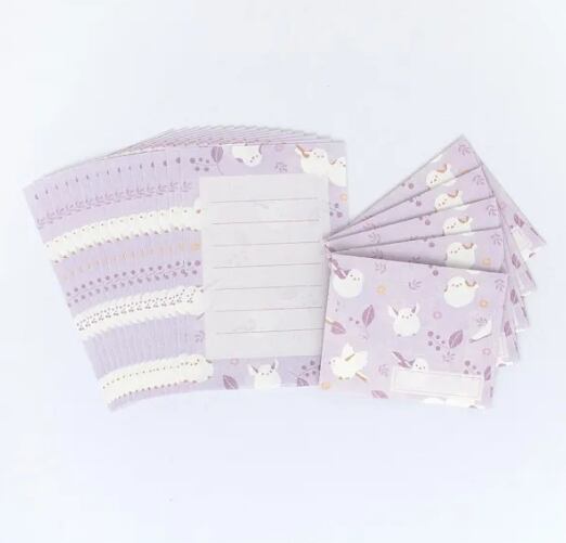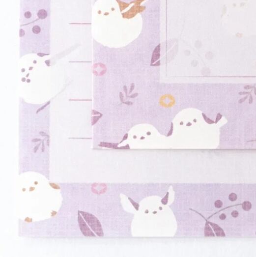 (ミニレターセット 便箋15枚 封筒5枚 和紙 横書き レター 手紙 大人 おしゃれ 御洒落 かわいい 可愛い 上品 友達 通年 WANOWA 鳥 小鳥 紫 吉祥模様 和風 ミニサイズ)