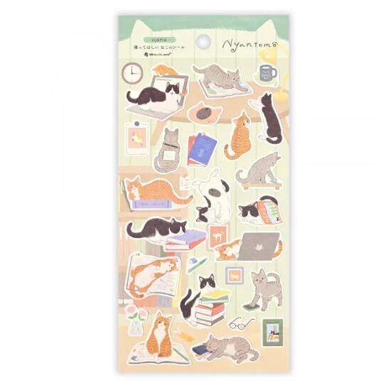 仲良しの猫たちが戯れる姿がわいいシールです。
