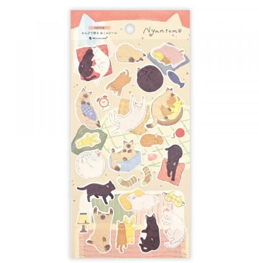 (猫シール にゃんとも 和紙シール ねこ 眠る猫 お昼寝 かわいい 手帳 デコレーション カール ベル ノア ブラン 絵柄付台紙)