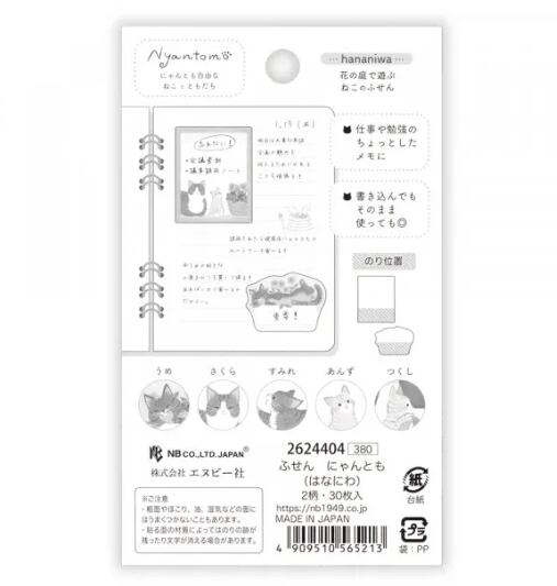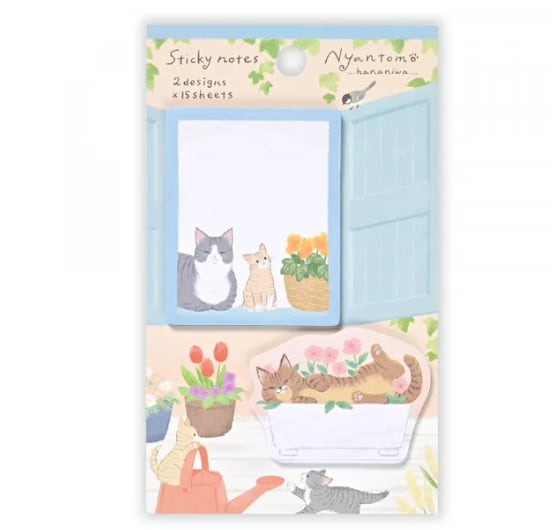 (ふせん にゃんとも 猫 うめ さくら すみれ あんず つくし キジトラ サバトラ クリーム猫 花咲く庭 可愛い ダイカット メモ 伝言 文房具 2柄30枚)