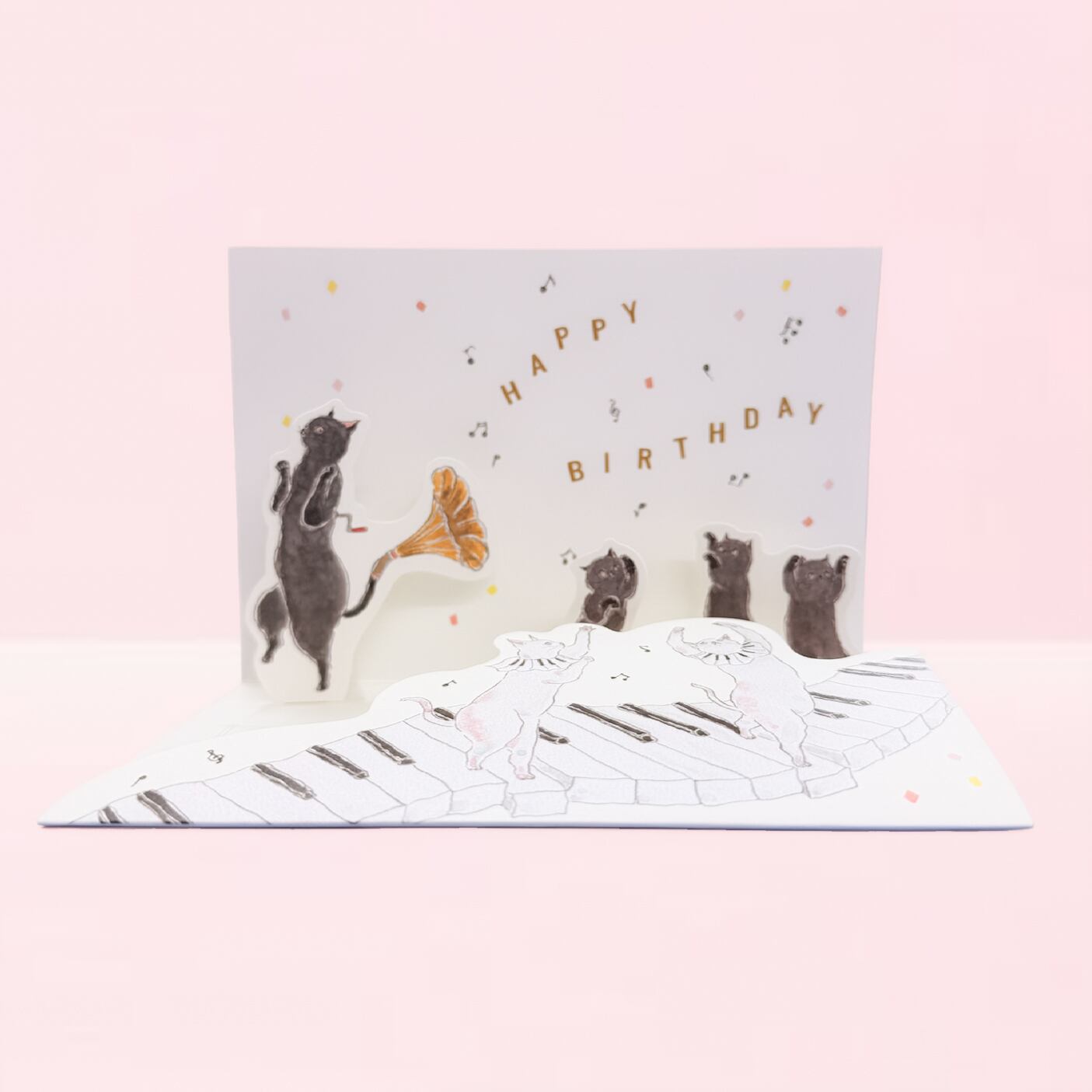 ”ゆるくてちょっぴりあやしい動物たち”を描くイラストレーター「TOCOROCOMUGI」。ほっこりやさしい気持ちになれる、コムギアニマルたちのユニークな日常をお届けします。 カードを開くとコムギアニマルたちが立体になるPOPUPカードが、楽しく気持ちを届けてくれます。 「バースデー」