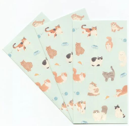 (のし袋 猫 ニュアンスカラー マンチカン ラガマフィン アメリカンショートヘア 日本猫 可愛い 多用途 お心づけ お祝い お札折らないサイズ 3枚入)