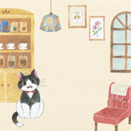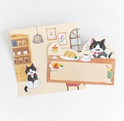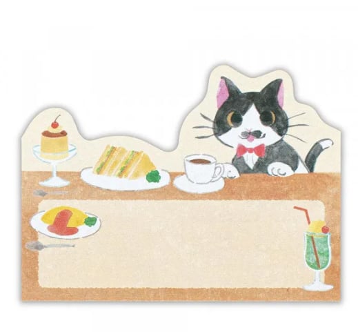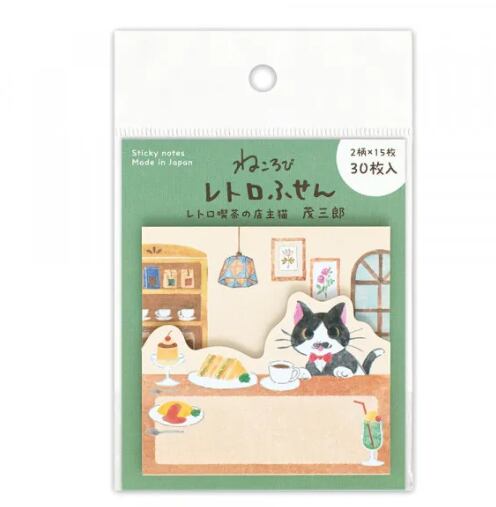 レトロ喫茶のハチワレ店主猫・茂三郎と、昔懐かしい喫茶メニューを描いたふせんです。