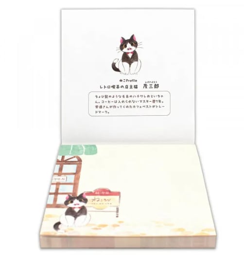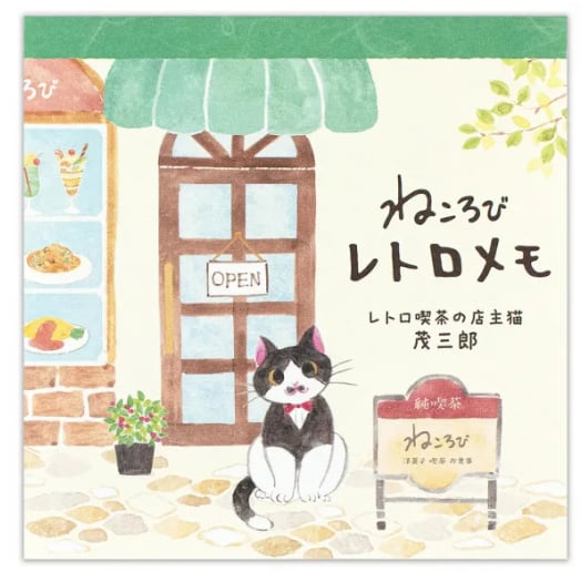 レトロ喫茶のハチワレ店主猫・茂三郎と、昔懐かしい喫茶メニューを描いたメモです。