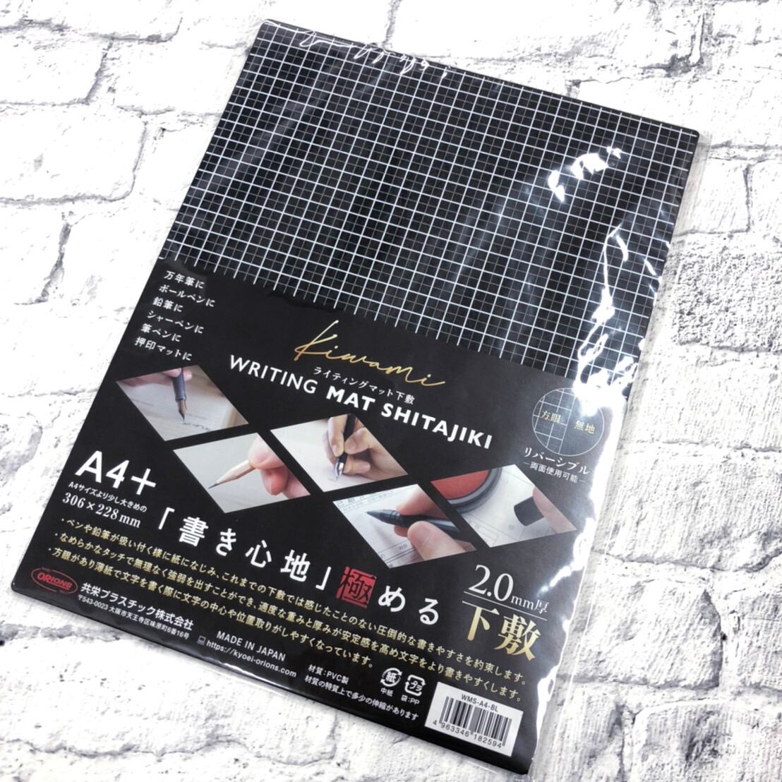・A4サイズ用紙より少し大きめのA4+サイズ(H306×W228mm)で、紙の端まで文字が書きやすく、また、線引きなどもしやすい仕様。従来下敷の様に鉛筆やペンが下敷からずれ落ちることを回避します。